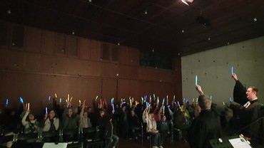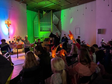 Am Sonntagabend fand der Abschluss in einem besonderen Gottesdienst im Dunkeln statt. Um 18 Uhr, als die Dämmerung längst hereingebrochen war, kamen viele Kinder mit ihren Eltern und Großeltern wieder. Eine kleine Band mit Schlagzeug, Klavier, Gitarre und Gesang sorgte für die musikalische Gestaltung. In Predigt und Gebet griffen Pfarrer Lange und Pfarrer Pfeifer die Erlebnisse der Nacht noch einmal auf – und machten spürbar, was Jesu Wort vom „Licht der Welt“ heute bedeuten kann. Bei Brezeln, Dips und Getränken klang der Abend in fröhlicher Gemeinschaft aus.