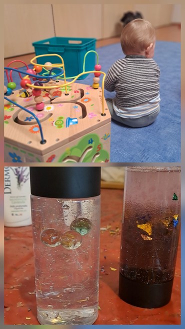 Gemeinsam haben wir im Anschluss Schüttelflaschen gebastelt und sie mit Murmeln gefüllt. Sie sollen uns in den nächsten Wochen begleiten mit der Idee: Solange wie die Murmeln brauchen, um in der Flasche herunterzurutschen, nehmen wir uns Zeit und sagen "Danke Gott für alles".