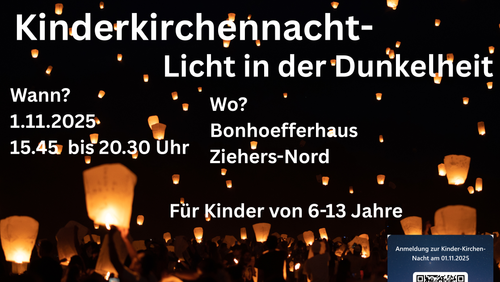 Am 1.11.2025 veranstaltet das KIGO-Team der St. Johanneskirche und des Bonhoefferhauses eine Kinderkirchennacht im Bonhoefferhaus.